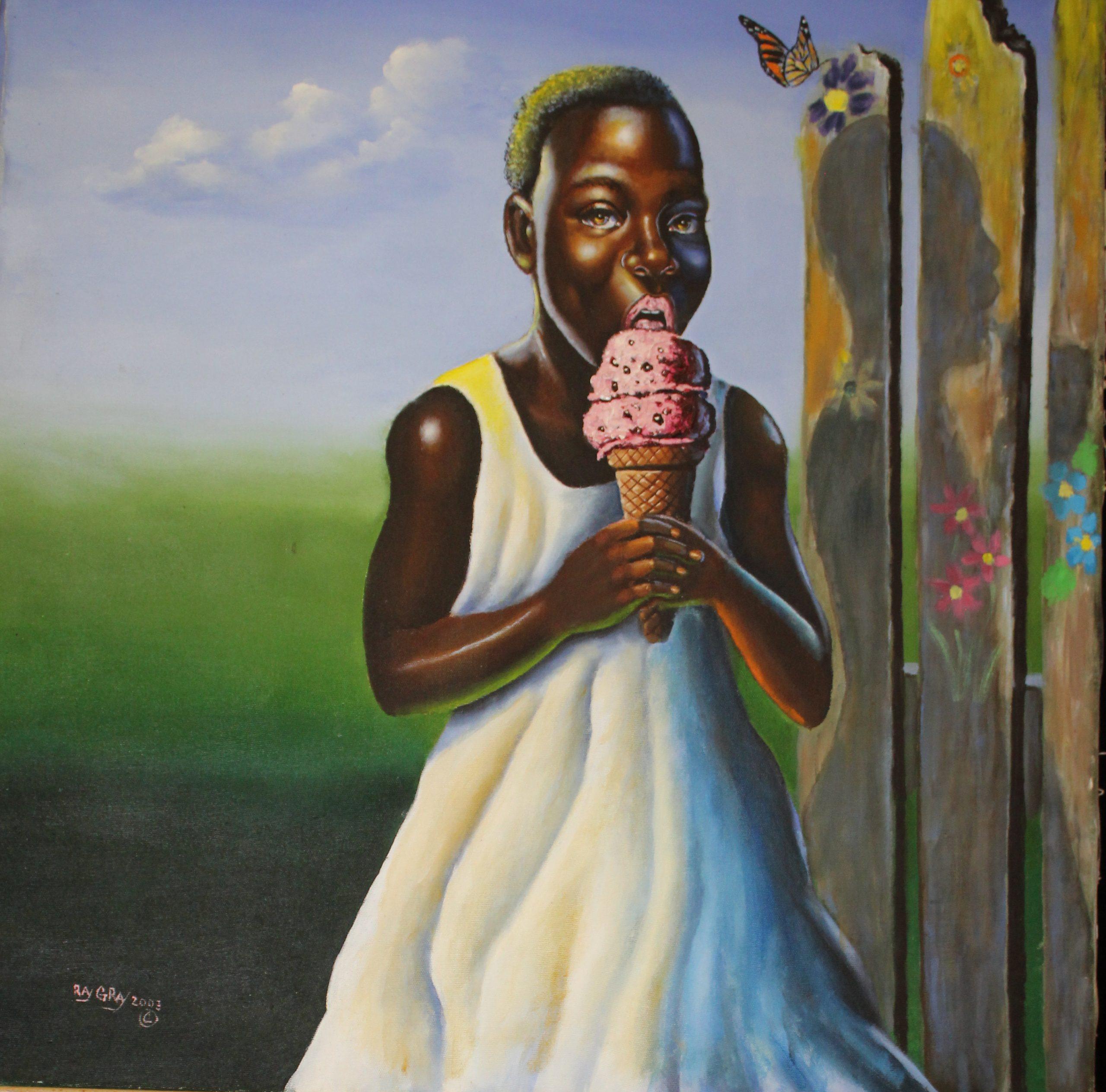 For years, Ray and his wife struggled to have his art seen and they were successful in many ways. An alliance with Pace, a prisoner art group based in New York, resulted in his work being seen all over the East. In addition, through the miracle of the Internet, people all over the world began to see and appreciate Ray Gray’s unique perspective and colorful depiction of a world which he could only see through his wife’s eyes and his imagination. Her photographs became the basis for many of his paintings of the 80s and 90s.