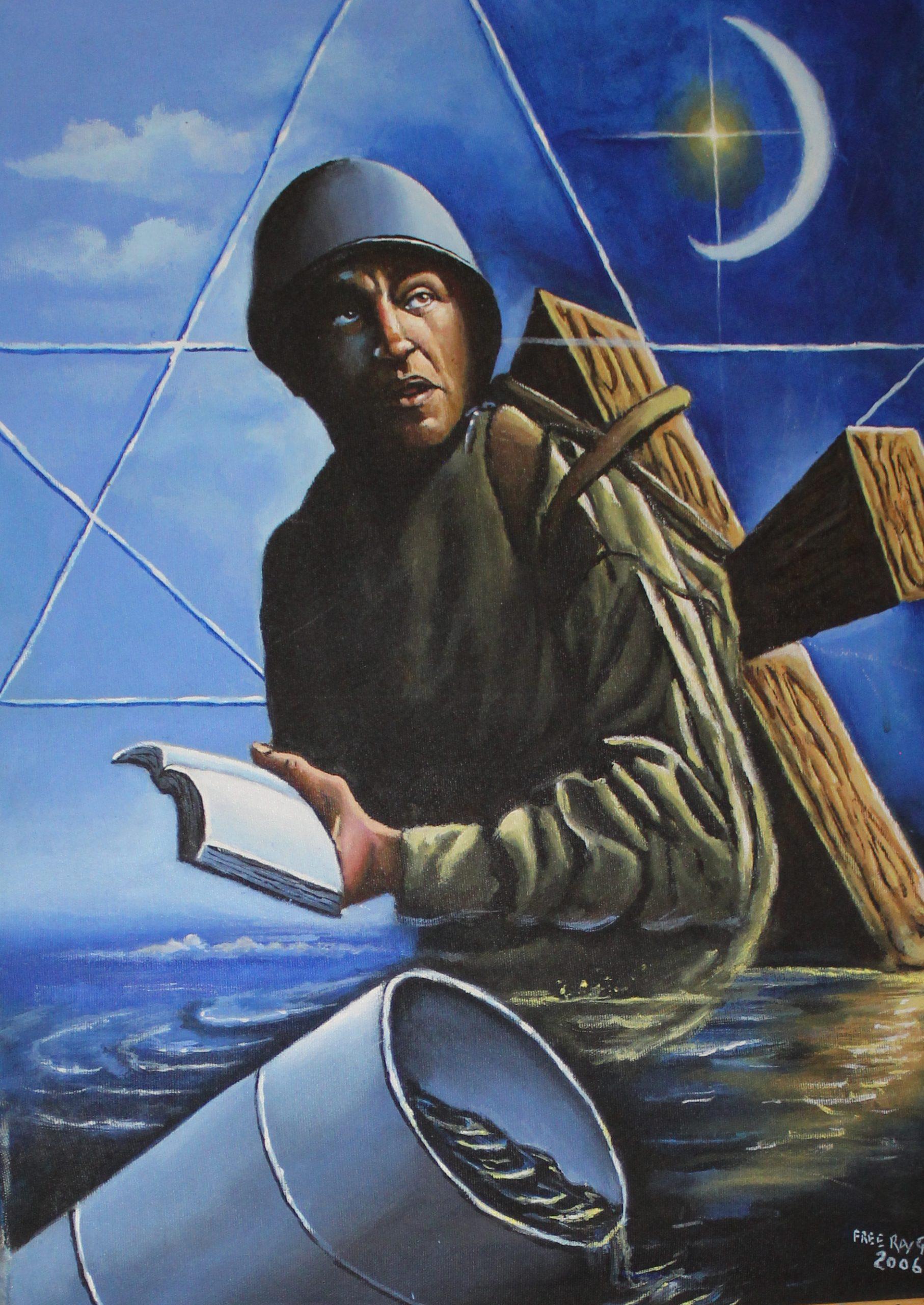 Ray’s paintings of the 2000s through May of 2021 were signed “Free Ray Gray” and depict his vision of the world as it reacts to the horrors visited upon it. His paintings are frightening, enlightening, and often amusing!